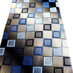 Pierre Cardin Beige Blue Woven Geometric Wide Silk Tie
