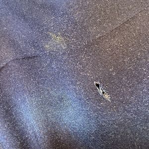 Preloved, button up. Noticed when wrapping a small tear and stain on sleeve (see photo, thus the price).