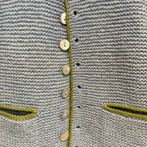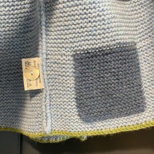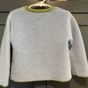 Size 2 Pierre Claire 100% Cashmere sweater for boys ages 1-3. Bought in Europe and worn a handful of times, the sweater is in excellent condition without any signs of wear. Light blue sweater with green edges. Dark blue pockets on the inside as well as an extra button.