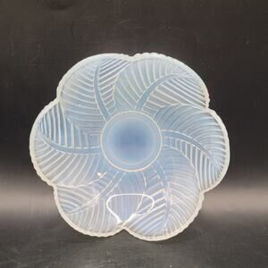 No damage on these beautiful heavy opalescent glass bowls. Each Measures approximately 5" diameter and 1.75" tall.