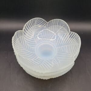 Pierre D'avesn France Opalescent Glass Art Deco Leaf Design Bowl Set of 3