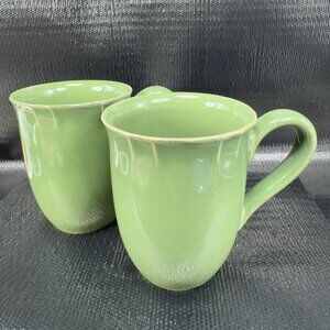 Pierre Deux Ceramic Coffee Mug Cup Set 2 Green Glaze Mugs Cups France Vintage