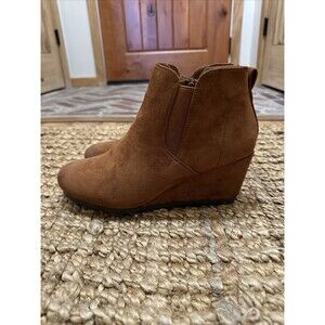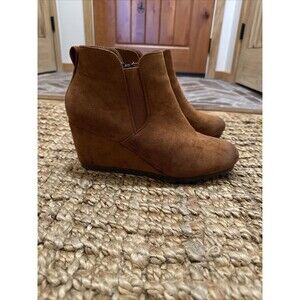 Pierre Dumas Boots Womens Size 10 Suede Tan Ankle Zip Wedge Booties