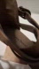 Chic brown heels with cutout straps. Features a wooden platform and buckle closure. Perfect for elevating your style.