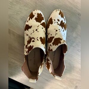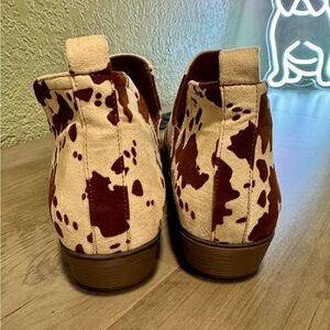 Chic cow print design. Slip-on comfort. Ideal for everyday style.