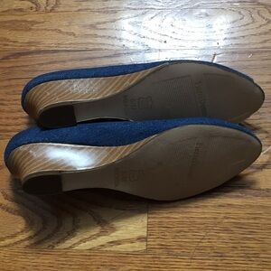 Pierre Dumas Denim Wedge Peep Toe Heels Shoes 6