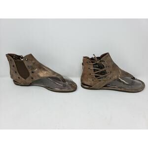 Pierre Dumas Gold Adele 2 Back Zipper Flat Open Toe Sandal Women's Size 10 M