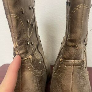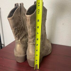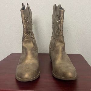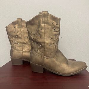 Pierre Dumas Gold Metallic Short Cowboy Boots Faux Leather Rhinestones Size 10