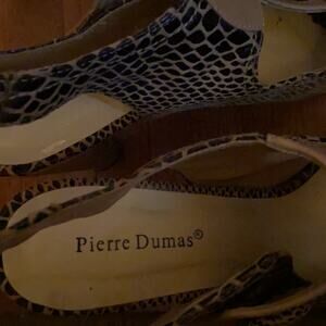 Pierre Dumas Heels Snakeskin Size 8.5 Retro Pinup Chic Black Cream Open Toe