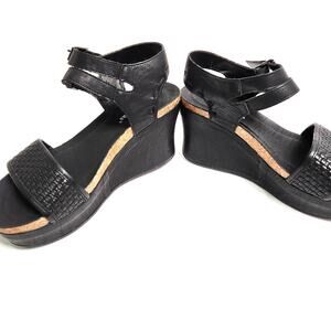 Pierre Dumas Hester-12 Wedge Sandals Size 8 Double-Buckle Vegan Faux Leather