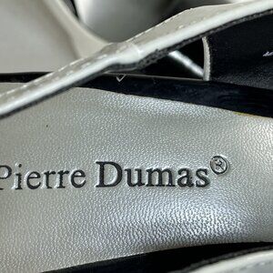 These Pierre Dumas high heels are a womens size 7.5 M with a 3.5 inch tapered block heel. Featuring a peep toe design and a slingback style, these black heels are both fashionable and comfortable. With an adjustable strap and manmade upper material, they are perfect for adding a touch of sophistication to any outfit. See the photos for details.