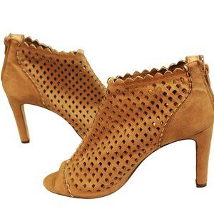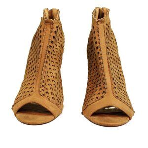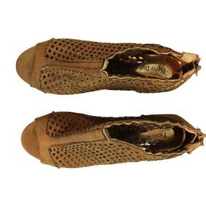 Pierre Dumas Lattice Suede Tan Ankle Heel with Peep Toe 8.5 Women’s