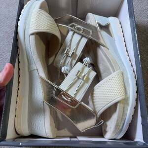 Step out in style and comfort with these Pierre Dumas Lyra Wedge Sandals in a versatile nude color. These sandals feature a chic wedge heel that provides a subtle lift, perfect for everyday wear or dressing up a casual outfit. The design includes adjustable straps for a secure and comfortable fit. Ideal for warm weather, these stylish sandals offer both fashion and function for your wardrobe. New in box.
