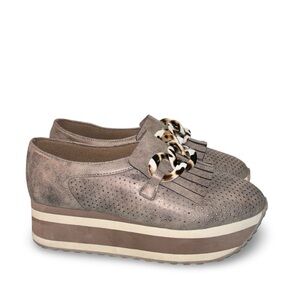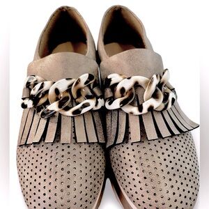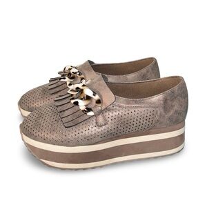 Pierre Dumas Paloma-2 Brown Loafers Size 6.5 with Animal Print Accents