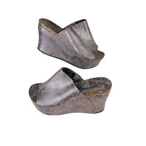 Pierre Dumas Platform Slide Sandal Metallic Silver Size 7.5 Womens