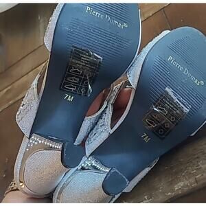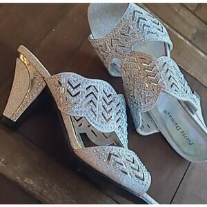 Pierre Dumas Silver Rhinestone Heeled Slip on Sandals Size 7