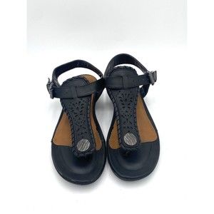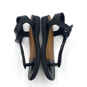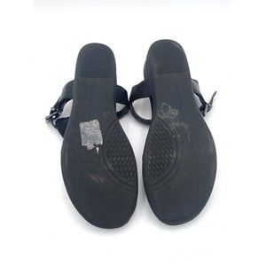 Pierre Dumas Size 9 KORI 3 Faux Black Leather Thong Sandals Ankle Strap EUC