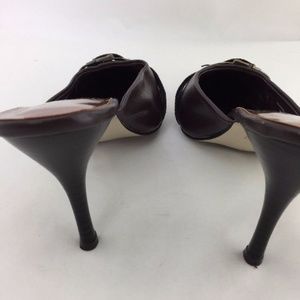 Pierre-Dumas-Slip-On-Swing-Brown-Heels-Shoes-Sz-8-5-M-Pointed-Toe-Studded-Buckle