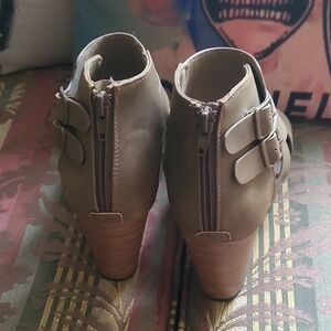 Step out in style with these Pierre Dumas heeled boots, featuring a chic tan color and a Western-inspired design. The boots boast a pointed toe, a short stacked heel, and decorative stitching, making them a versatile addition to any wardrobe. Perfect for adding a touch of elegance to casual outfits, these ankle-height boots are both fashionable and functional.