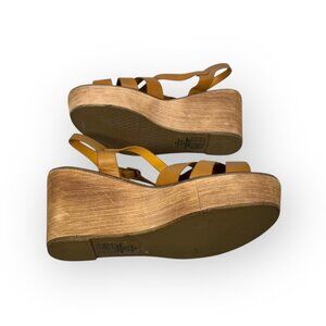 Pierre Dumas Wedges Women's 8.5 Yellow Mustard Leather Strappy Zada
