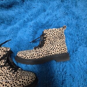 These Pierre Dumas combat and moto boots feature a striking tan and black design, perfect for making a bold statement. With a durable chunky black rubber sole and a lace-up front, they offer both style and functionality. Ideal for adding a touch of edge to any outfit.