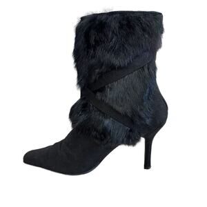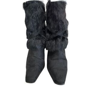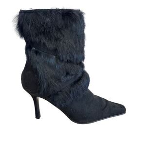 Pierre Dumas Women's Black Stiletto Heel Boots Size 9M Faux Fur Trim