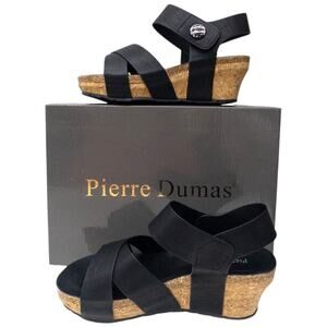 Pierre Dumas Women's Chantal 4 Wedge Sandal Black Silver Size 7