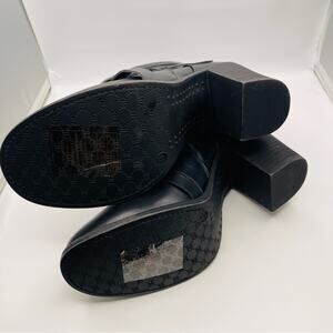 Pierre Dumas black moto strappy block heel ankle booties 9