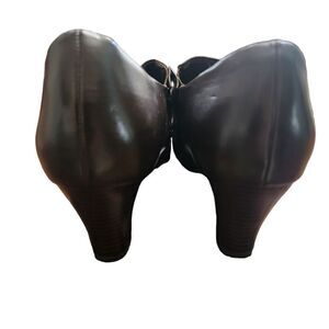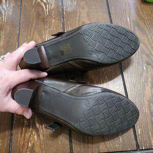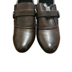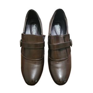 Pierre Dumas brown slip on almond toe buckle top3" heel in excellent condition