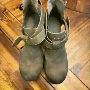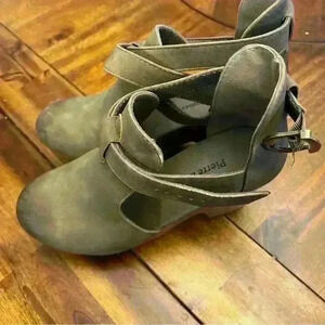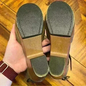 Pierre Dumas tan distressed wooden close toe clogs womens shoes size 6
