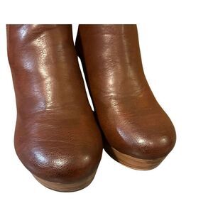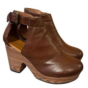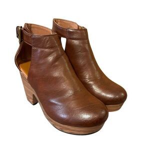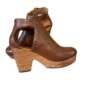 Platform clogs, leather upper, super comfy, buckle closure, round toe, small clog feel, elastic on side for comfort and stretch