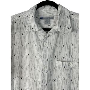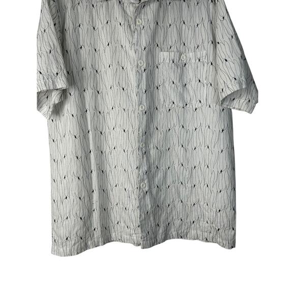 Pierre Garcia Shirt Men's Size L Black White Print Linen Button Up Short Sleeve