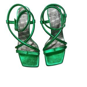 Pierre Hardy 60mm crossover-strap sandals in lamb green metal NWB Size 36/ US 6