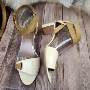 Pierre Hardy Cream/Tan Vtg Leather Ankle Wrap Block Heel Shoes Sz 40/9