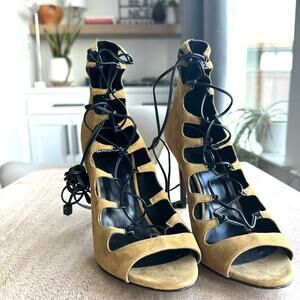 Style: Lace-up, open-toe, stiletto heels
