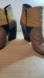 Sophisticated ankle boots with a bold design. Features tan and yellow leather. Perfect for adding flair to any outfit.