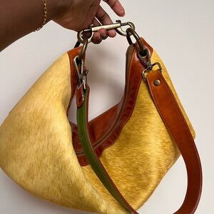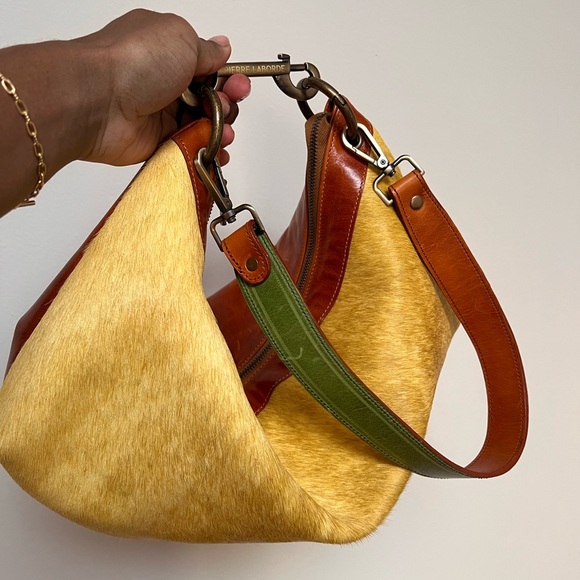 TikTok viral Pierre Laborde calf hair and leather mustard yellow and cognac medium sized bag. Bought a few weeks ago. New with no tags, no box or dust bag, not used at all!