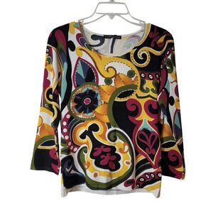 Pierre New York Womens Multicolor Paisley Print 3/4 Sleeve Top Size M