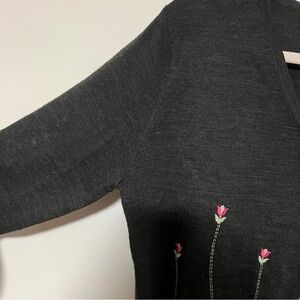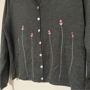 Pierre cardin grey cardigan with buttons flower embroidered size large