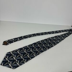 Pierre Balmain Silk Tie Black Blue Geometrical Pattern One Size