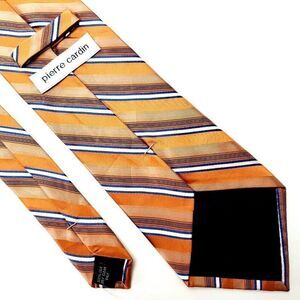 Pierre Cardin Silk Tie Woven Orange Striped Wide