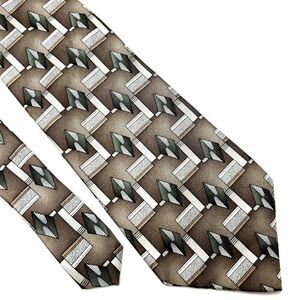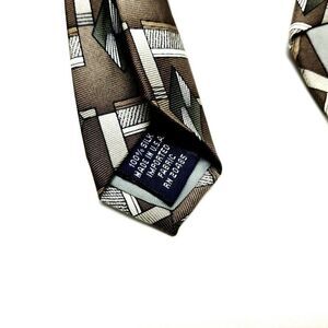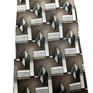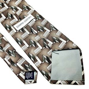 Pierre Cardin Silk Tie Brown Green Print Geometric Wide