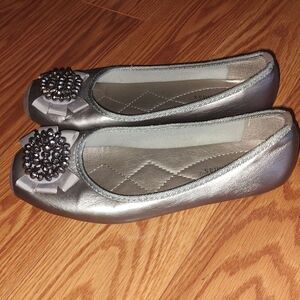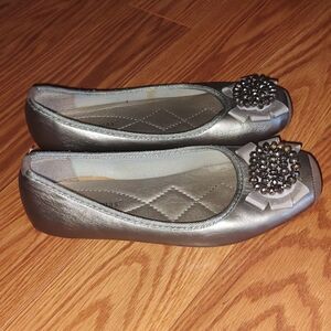 Pierre Dumas silver gray ballerina loafers flats shoes Sz 6.5