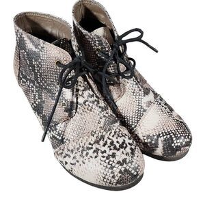 Pierre Dumas Women's Taupe Snakeskin Lace-up Two-eye Wedge Ankle Boots Size 7