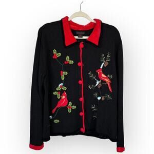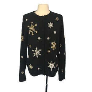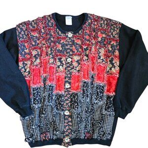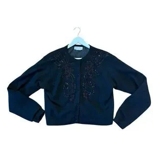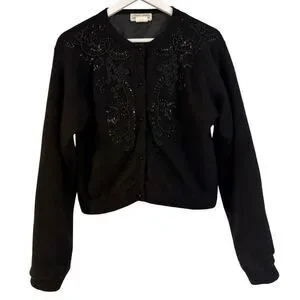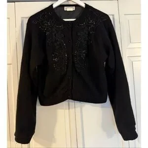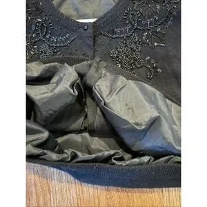 Pierre Lefond Wendy Foster Vintage black wool angora beaded cardigan sweater M