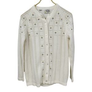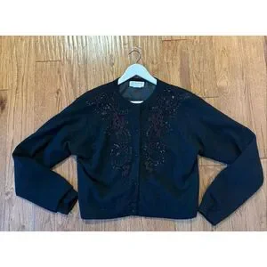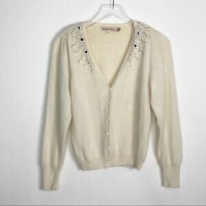 Description: Vintage wool angora blend embellished beaded lined cardigan sweater