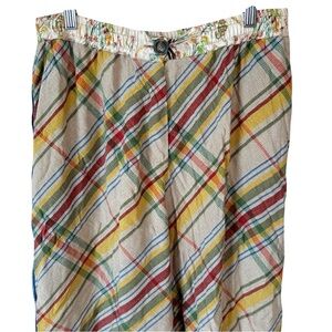 all-over plaid print with floral print elasticated waistband, two side slash pockets (no drawstring)