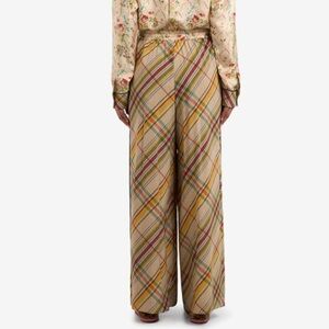 Pierre-Louis Mascia ADANASTR Plaid Printed Silk Palazzo Trousers