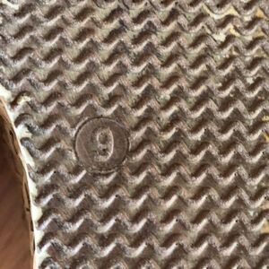 Pierre Dumas slides. All man made material. Sz 9. Some color coming off of bottom sides. Otherwise great condition.