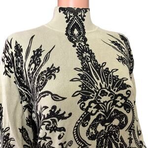 Pierri New York Floral Black On Green Mock Turtleneck Sweater Large